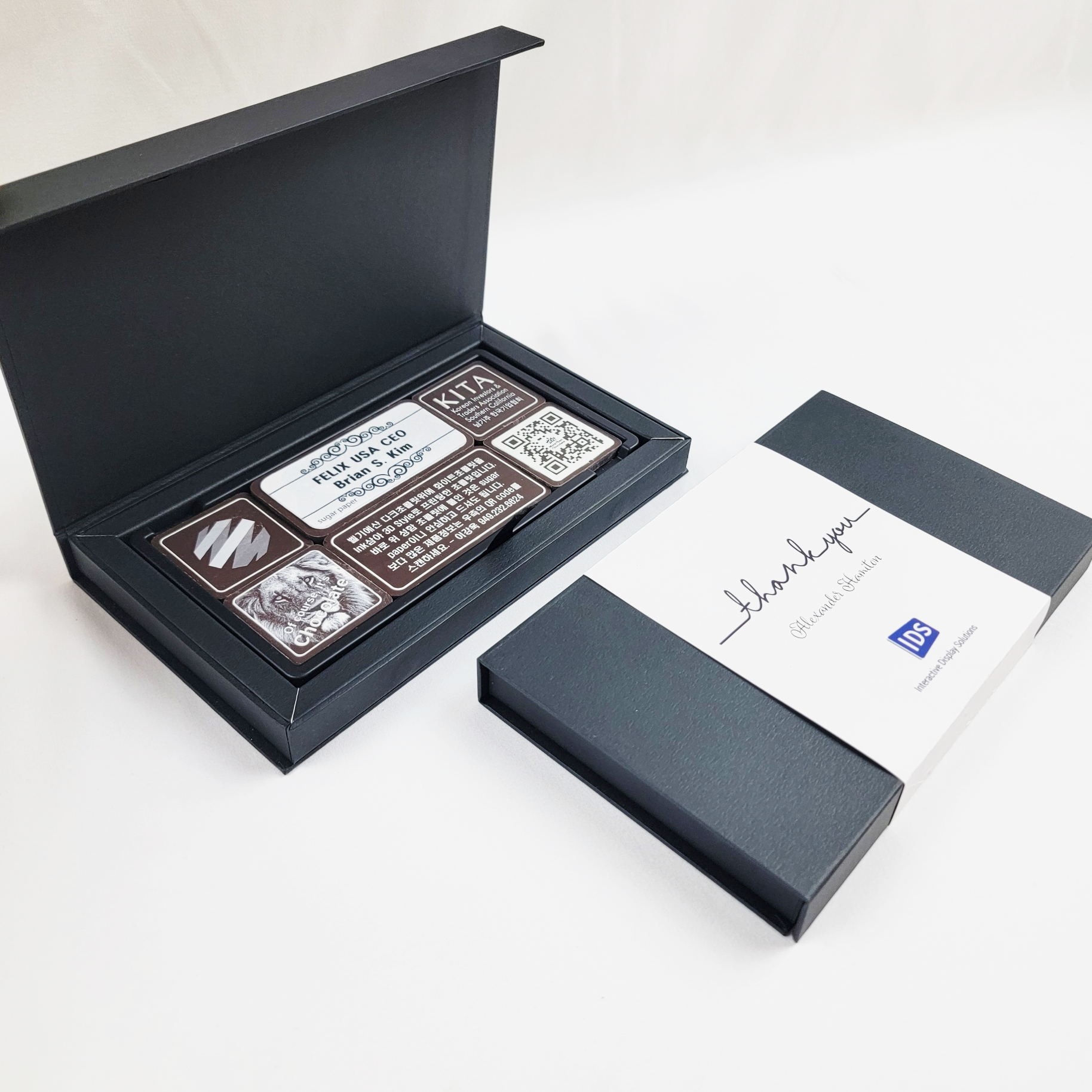 " Do you want to personalize a gift with your valued customer’s name and your name? At MoreThanChocolate, we offer custom-designed chocolates as well as luxurious packaging, perfectly personalized with the recipient's and sender's names. This personalized touch adds a special element to the gift, making it a unique and thoughtful gesture. Perfect for any occasion, this customization makes the experience even more memorable for both the giver and the recipient. Create a unique and memorable gift that speaks from the heart. "