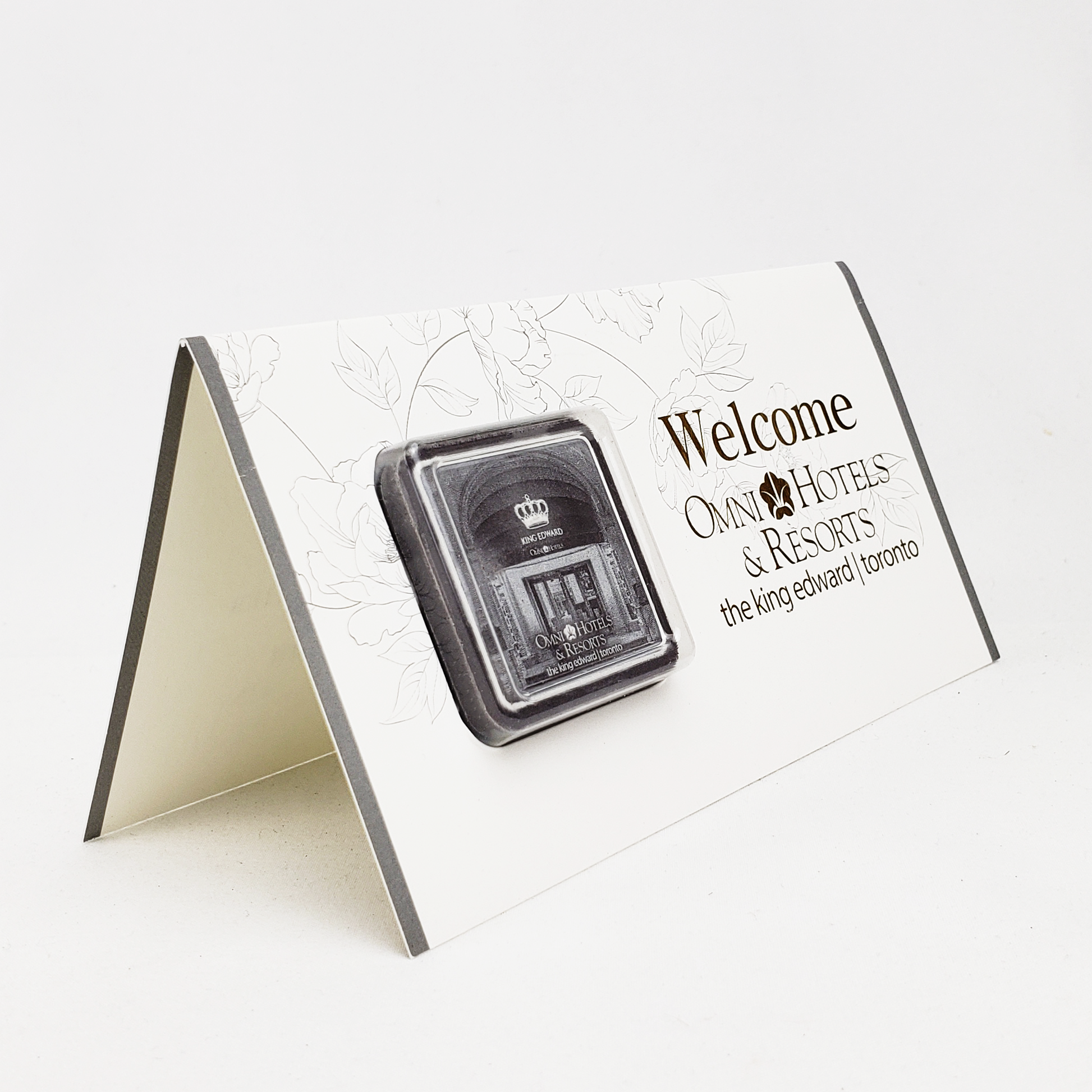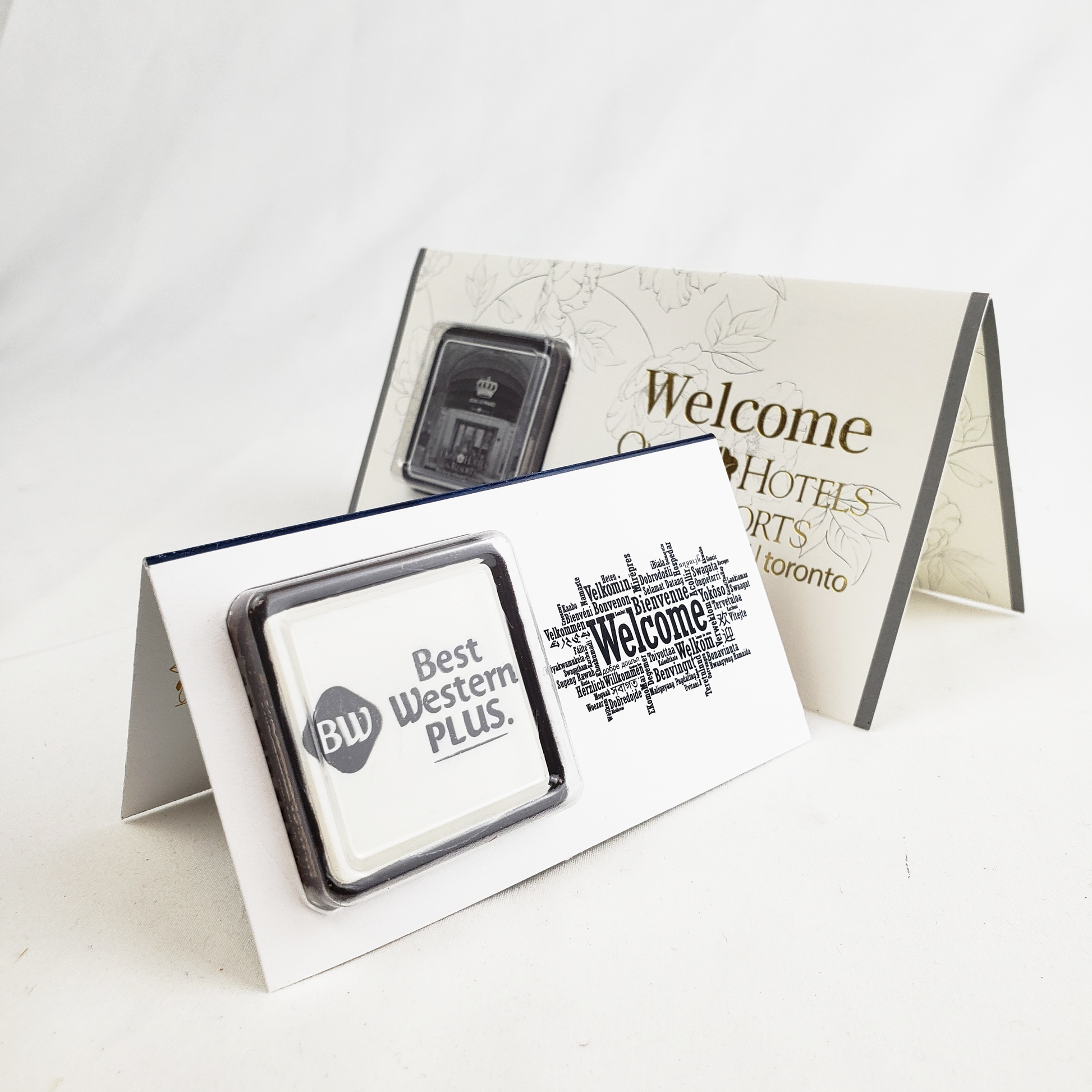 Welcome your guests with a touch of sweetness using our Chocolate Welcome Cards! Infused with personalized designs, these delightful chocolates not only satisfy the taste buds but also express your warm hospitality. Elevate the welcome experience for your guests, whether they are friends, family, or business associates. Order your Chocolate Welcome Cards today and make their stay even more special.